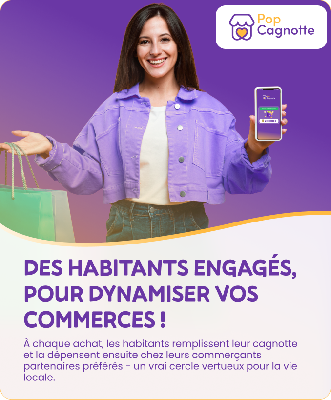 Pop cagnotte dynamise le commerce de proximité et partage des informations sur la ville via un fil d’actualité.